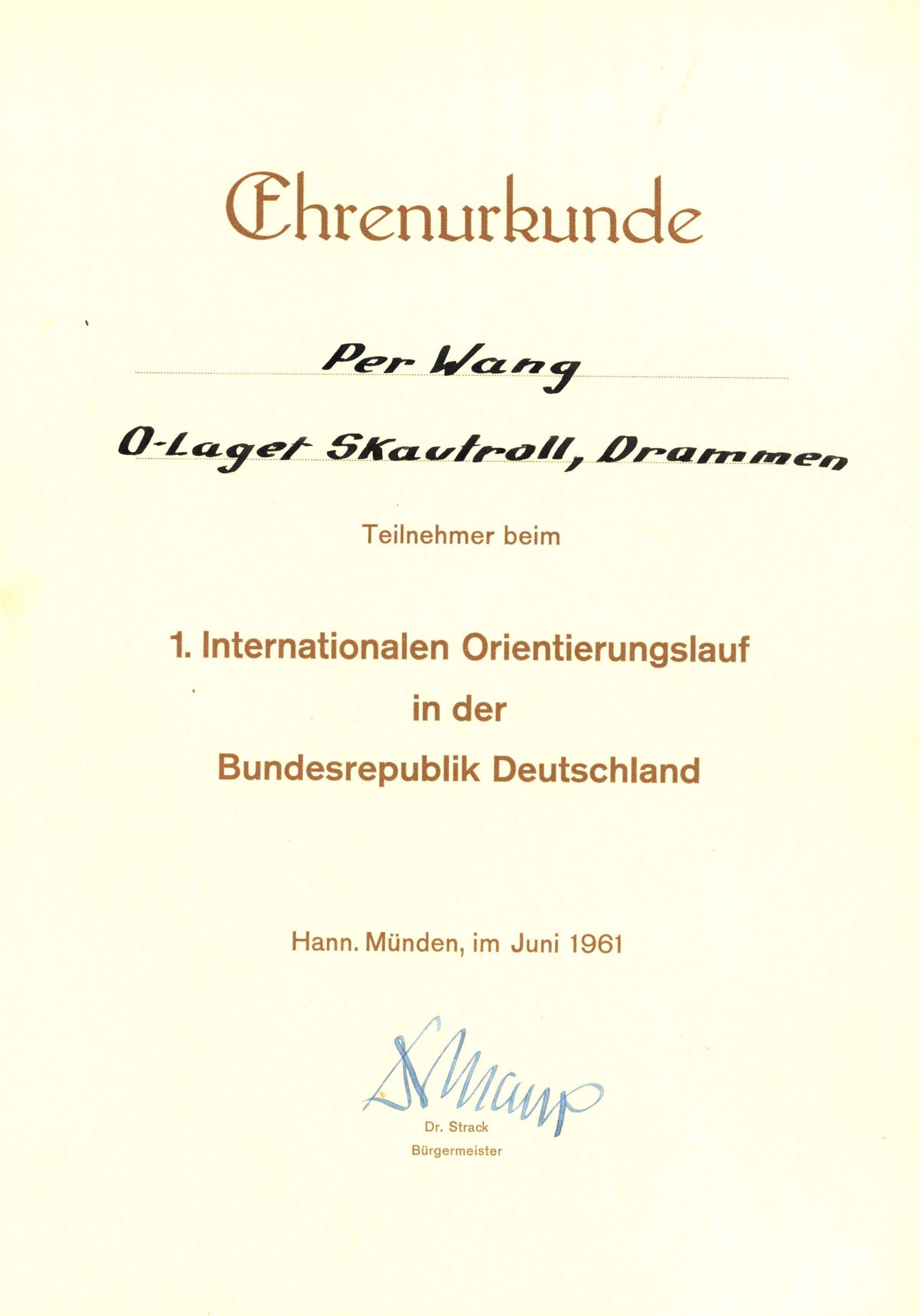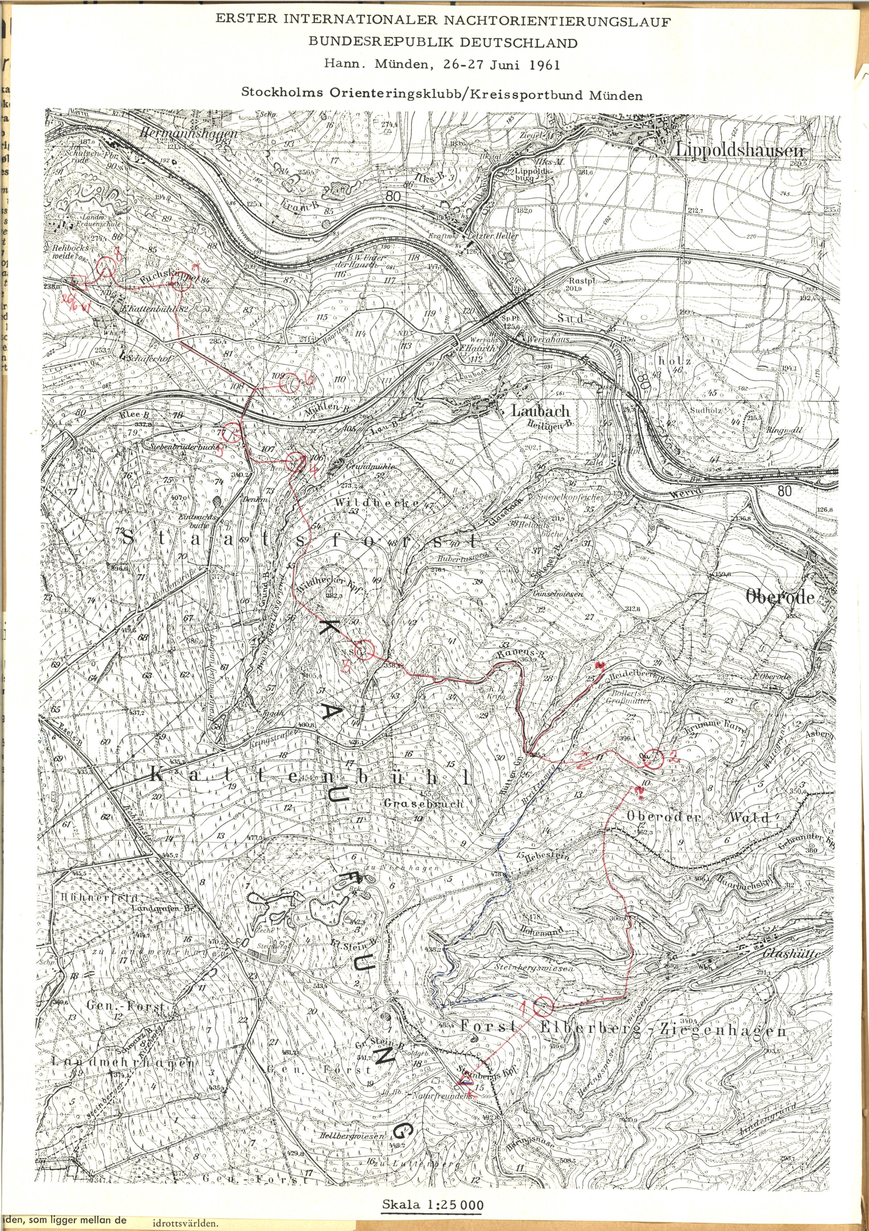I juni 1961 var det nettopp svenskene som var kreftene bak et – som det står i overskriften – et märkligt orienteringsløp. Stockholms O-Klubb ved lederen Baron Gösta «Rak» Lagerfelt satte det hele ut i livet. Ikke i Sverige, men i Tyskland. En landskamp med lag fra de respektive deltagende lands mest fremtredende klubber. Stockholms OK skulle selvsagt delta. Likeså IFK Helsingfors, Finlands beste klubb. Sveits hadde ingen orienteringsklubber på den tiden, men stilte med et godt bylag fra Zürich. I 1961 var den organiserte orienteringssporten bare tre år gammel i Tyskland og de stilte med sitt landslag. I praksis var det et bylag fra Arnsberg forsterket med noen løpere fra Harz. Fra Norge reiste en av den tids aller beste klubber, Skautroll fra Drammen. Holte IF fra Köbenhavn skulle også vært med, men av ukjent årsak stilte de ikke til start. Planlagt var det også at et jugoslavisk lag skulle stille. Kanskje fikk de ikke utreisetillatelse, de kom heller ikke til start.