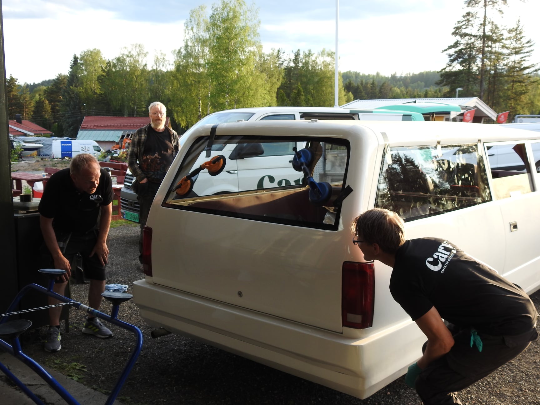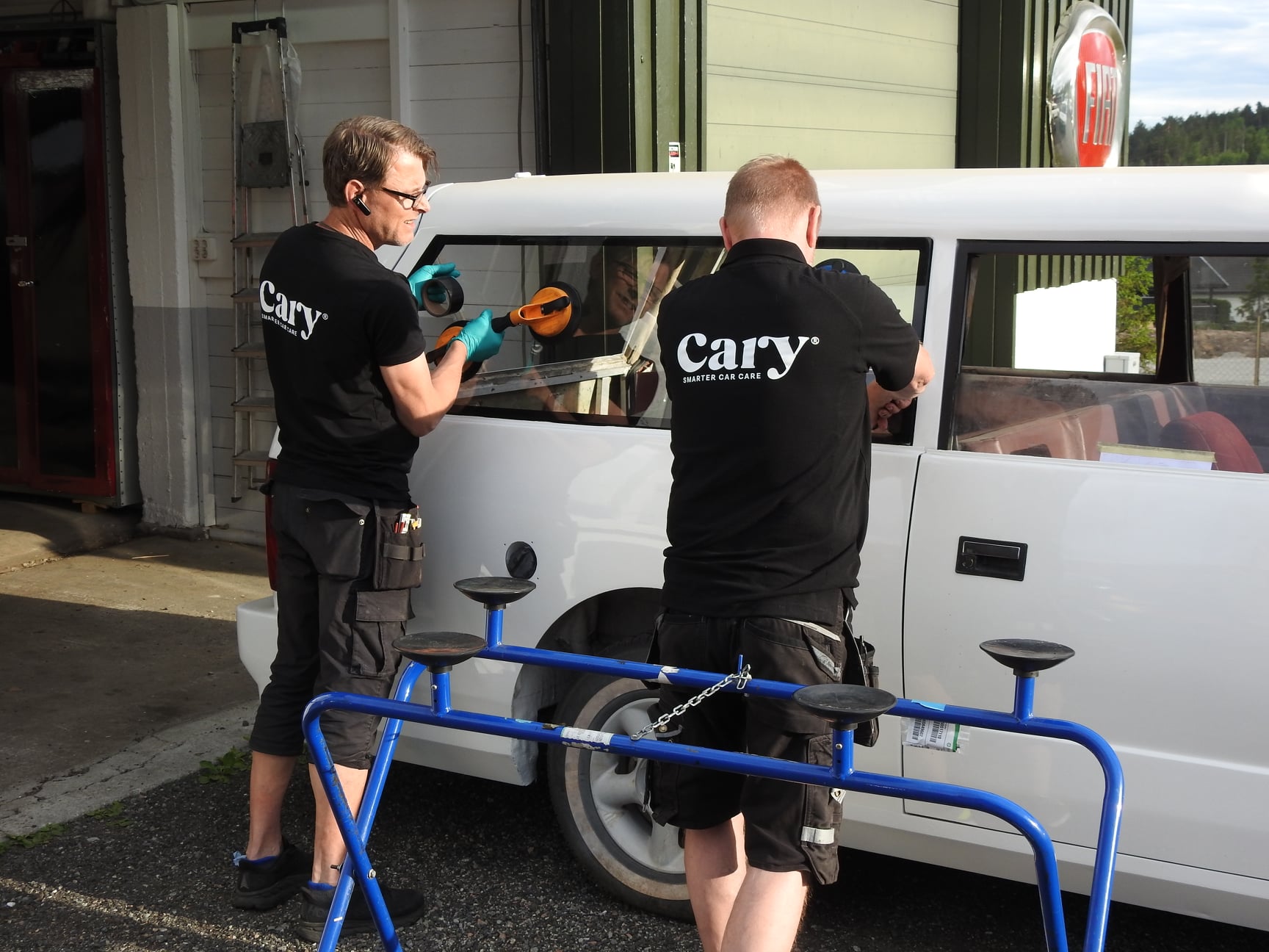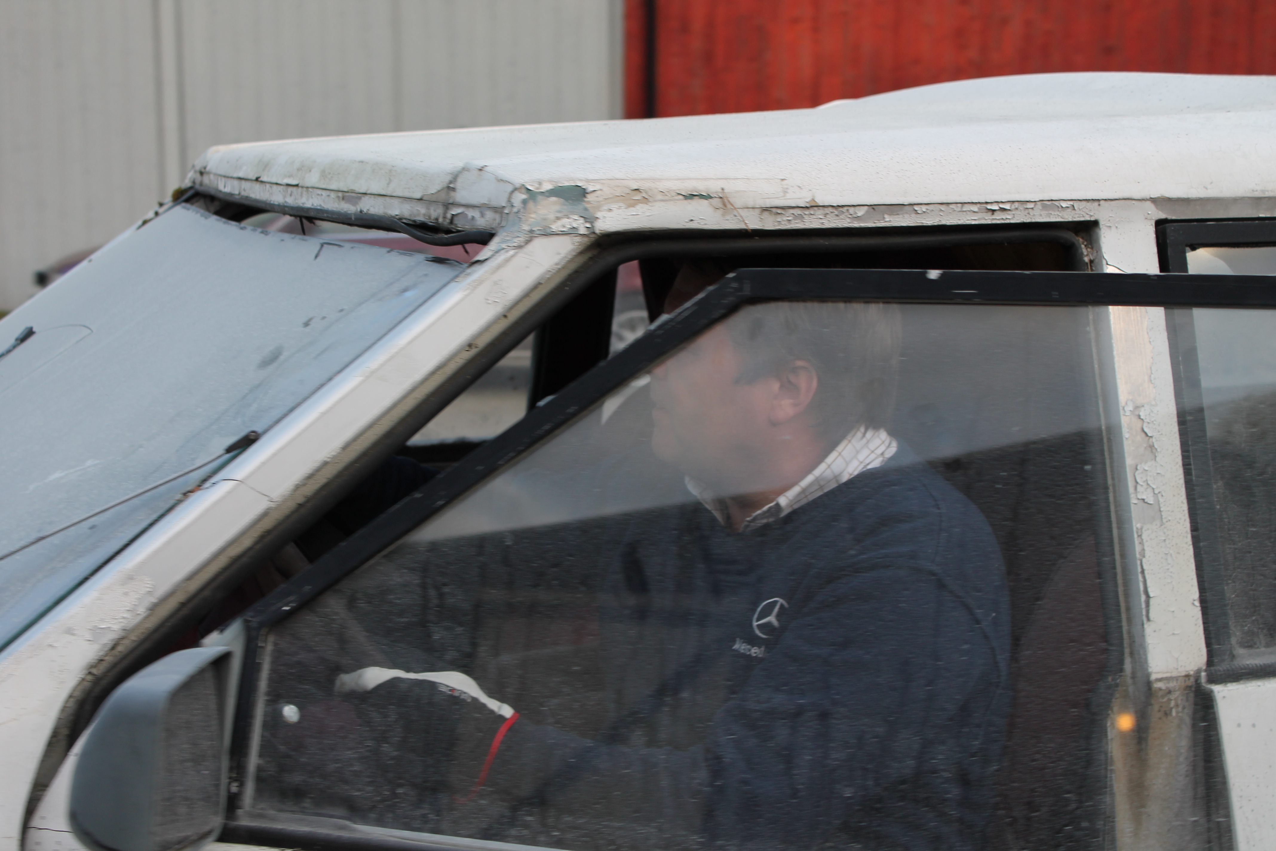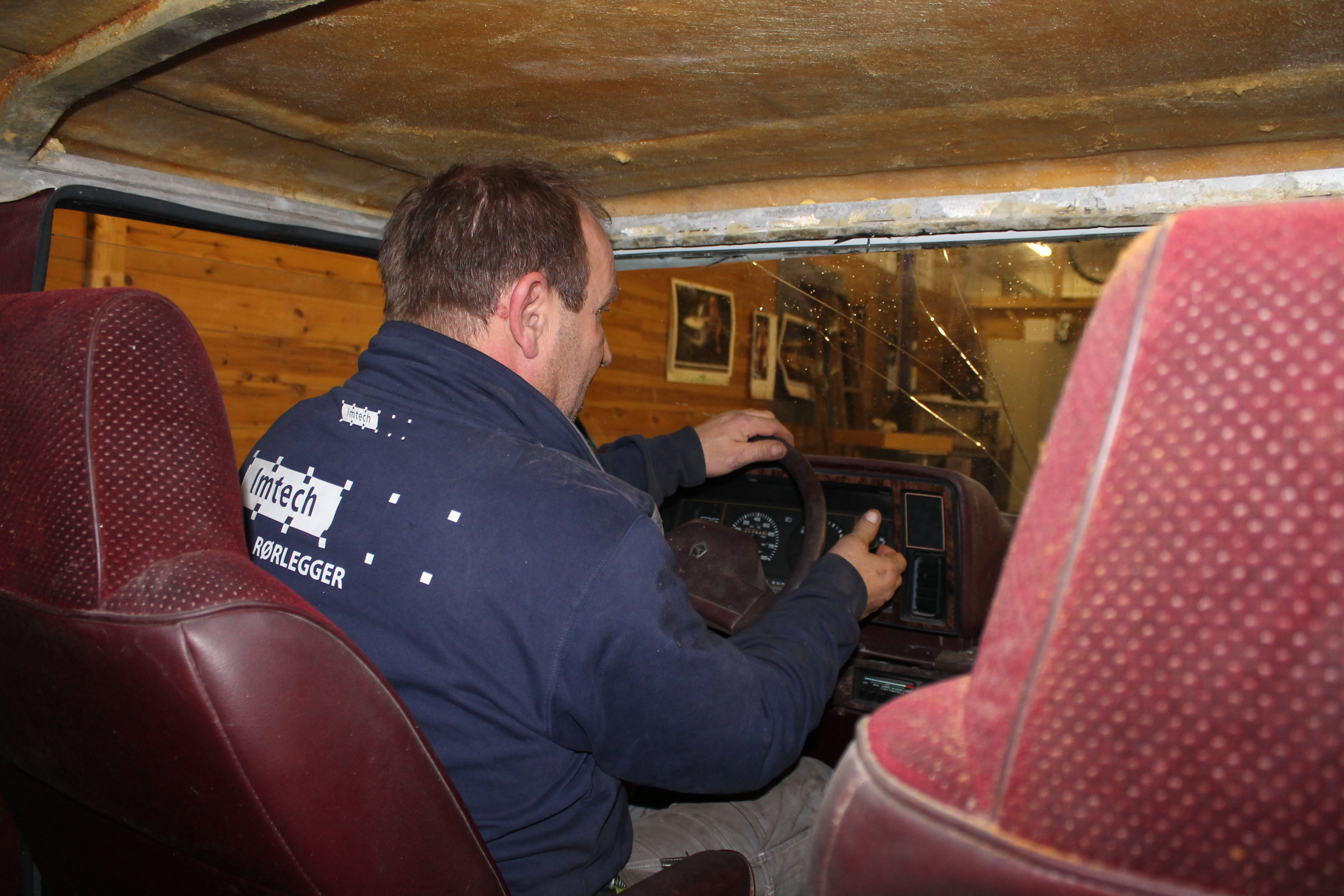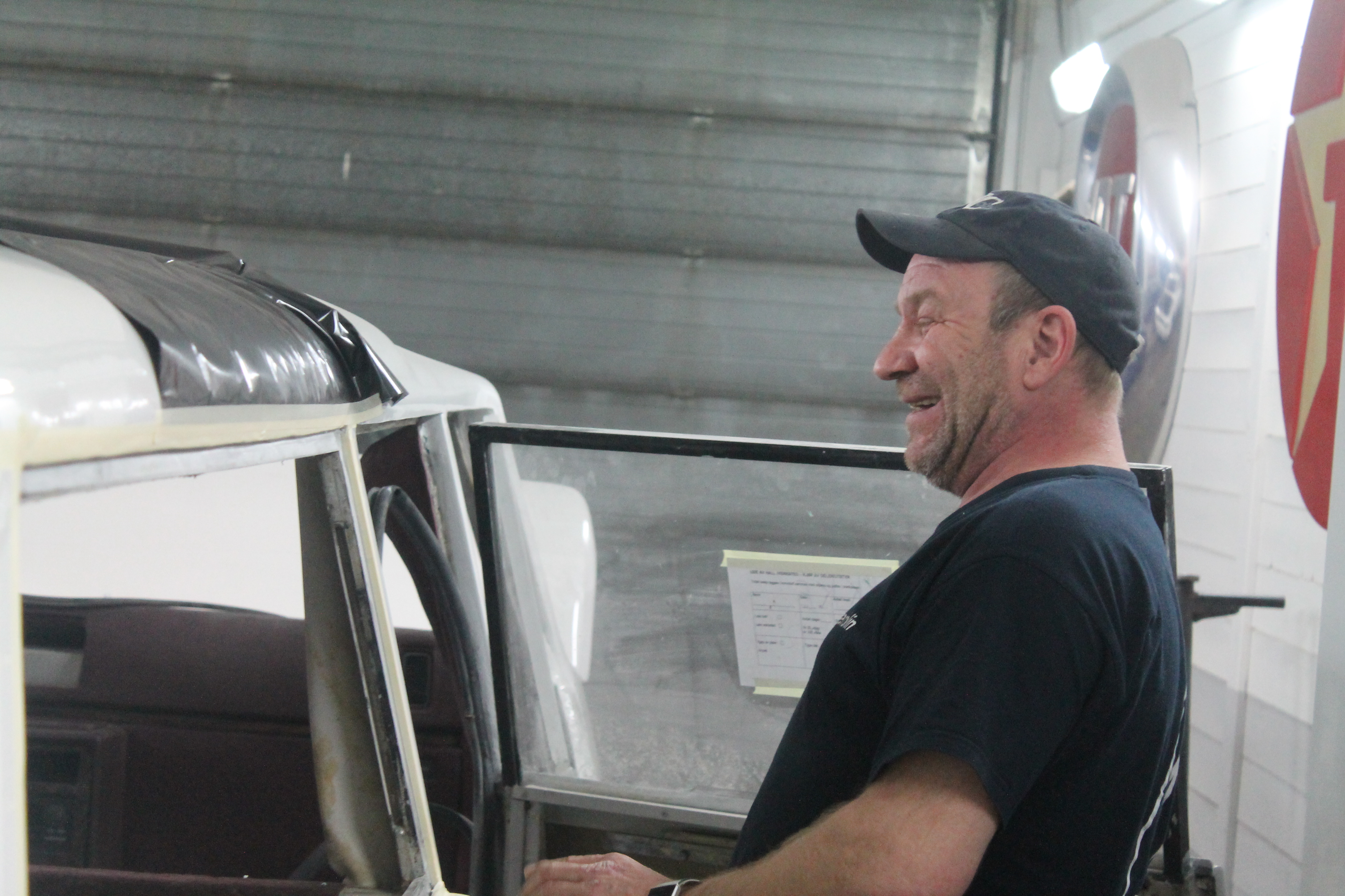 Frontruta ble et kapittel for seg selv. Den ble ødelagt under transport og vi måtte finne en ny. Det eneste som fantes av opplysninger om den var at den var skåret ut av frontruta til en lastebil, men ingen husket hvilken lastebil. Den gamle knuste ble levert til glassmester som lovet å skaffe ei rute. Det varte og rakk og etter mye masing kom det ei rute. Som slett ikke passet. Den gamle vi hadde som mal hadde blitt rotet bort. Saken ble ikke enklere da kan man si. Det ble kjørt rundt og kikket på lastebiler fra 80-tallet, men ingen fant noe som så ut til å passe. Cary Bilglass ble satt på saken, og de tok oppgaven med stor iver. Mange rare ruter ble prøvd, ingen passet. Vi var i ferd med å bli skikkelig frustrerte da kara fra Cary snudde ei rute til Scania LB80 opp ned. Hvem kunne tenke seg den muligheten? Avansert mal ble lagd og da viste det seg at hullet til frontruta er tre og en halv centimeter lavere på venstre side enn den er på høyre. Rute ble kappet til – og sprakk….. Rute nummer to ble kappet til, og den sitter som støpt i det asymmetriske hølet.