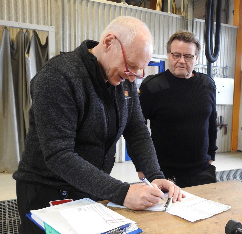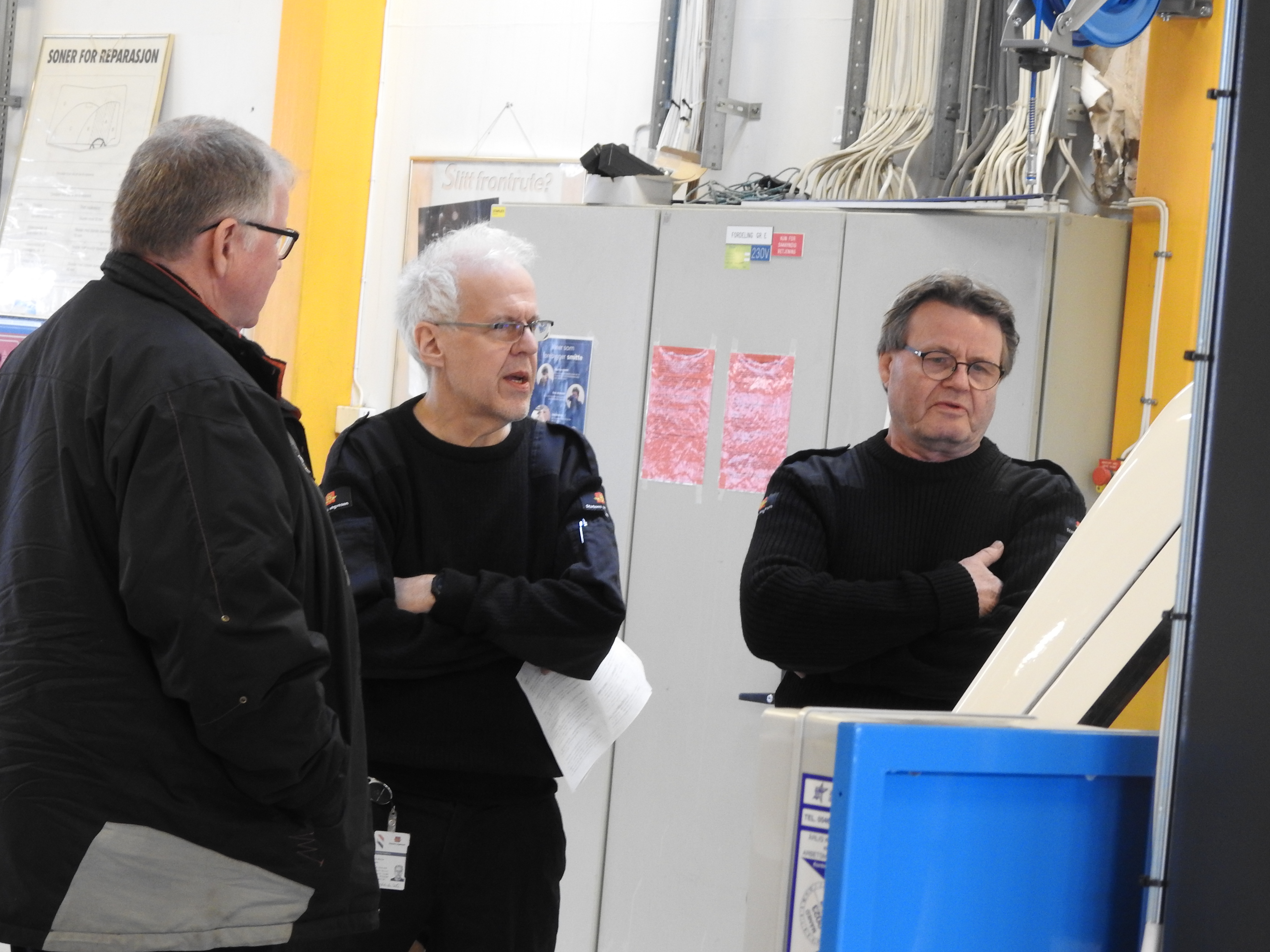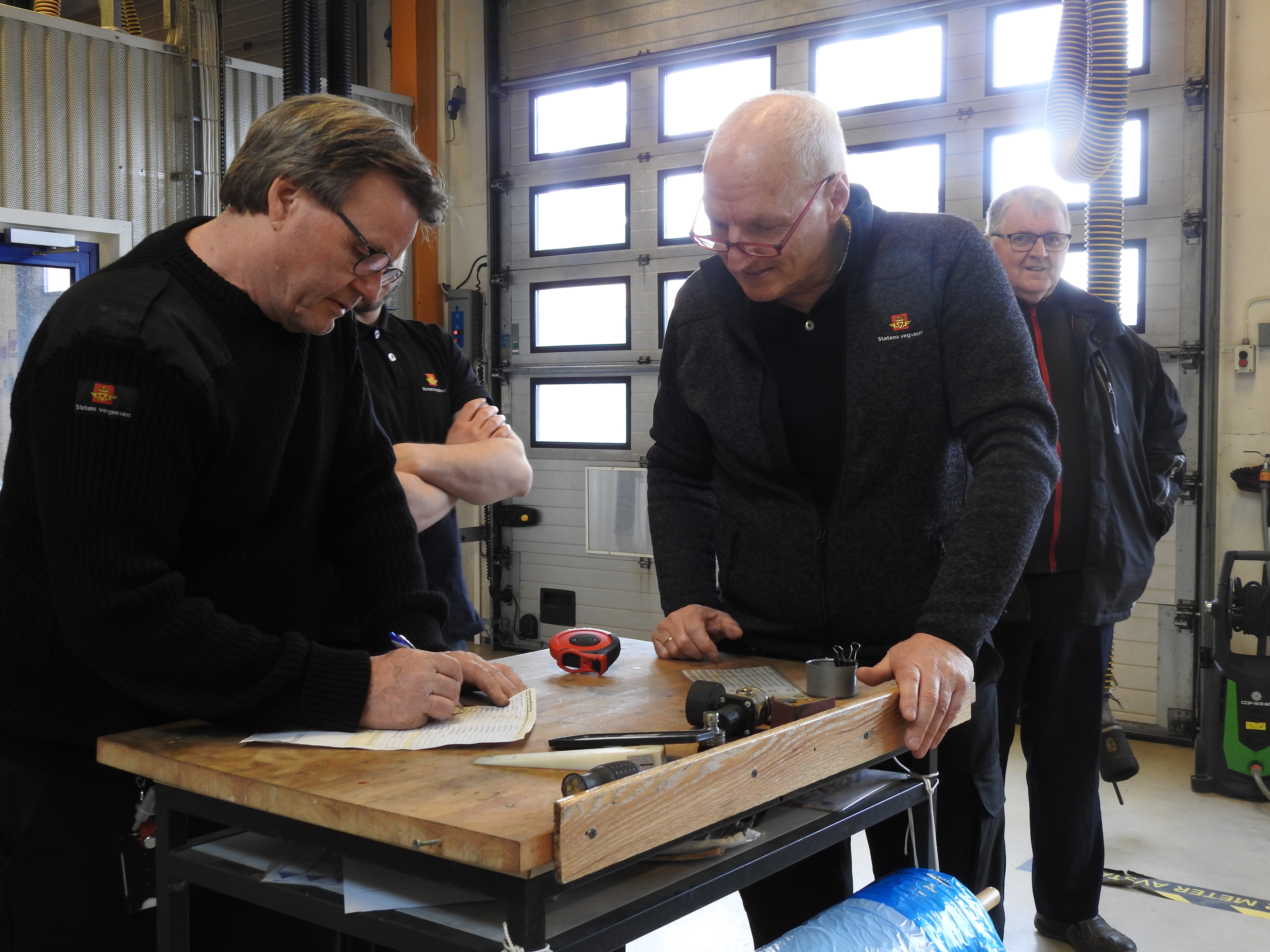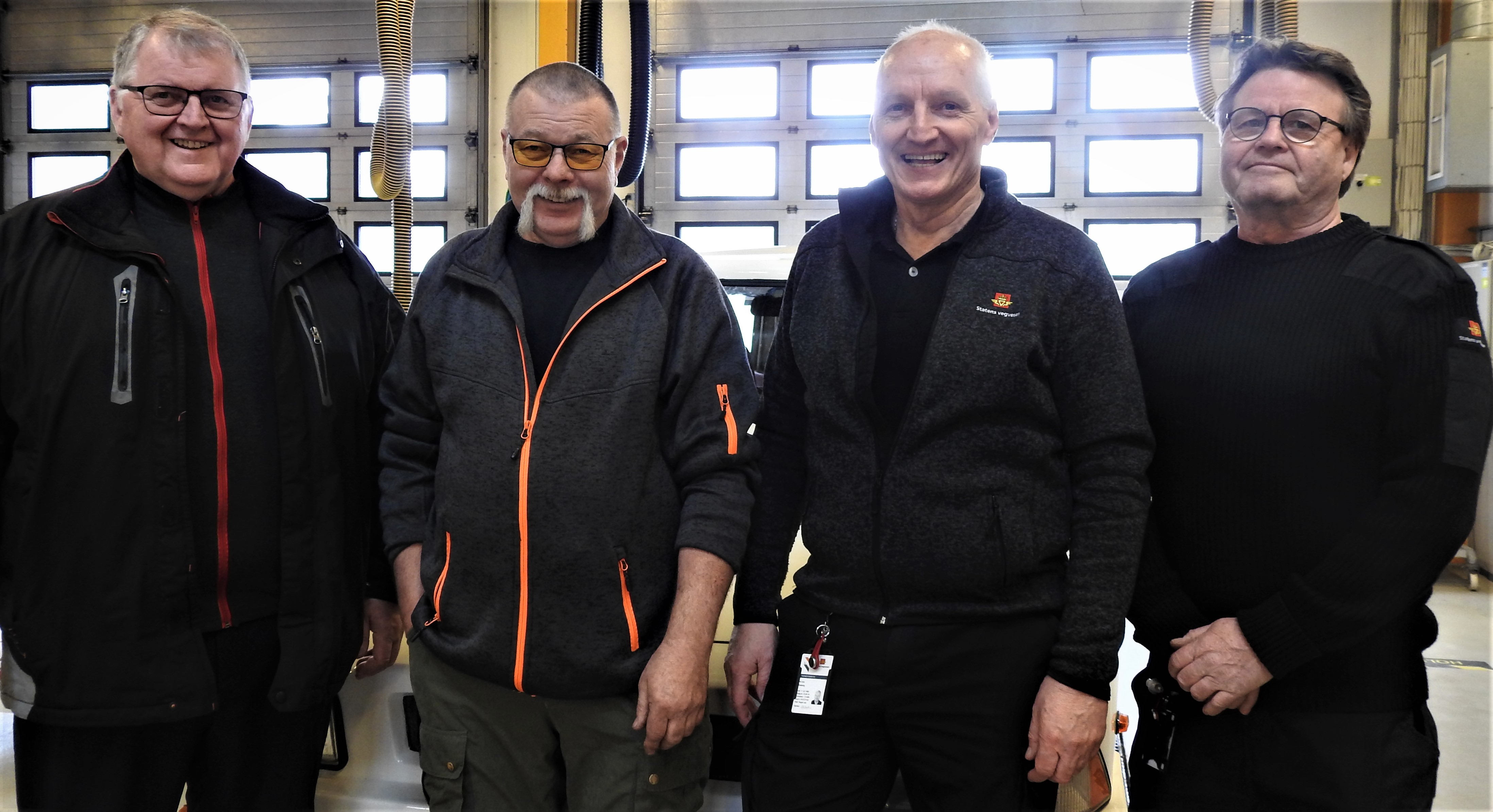 Storarbeidere Rolf Maurseth og Otto Werner sammen med kontrollørerene Pål Erik Westeng og Runar Støleggen