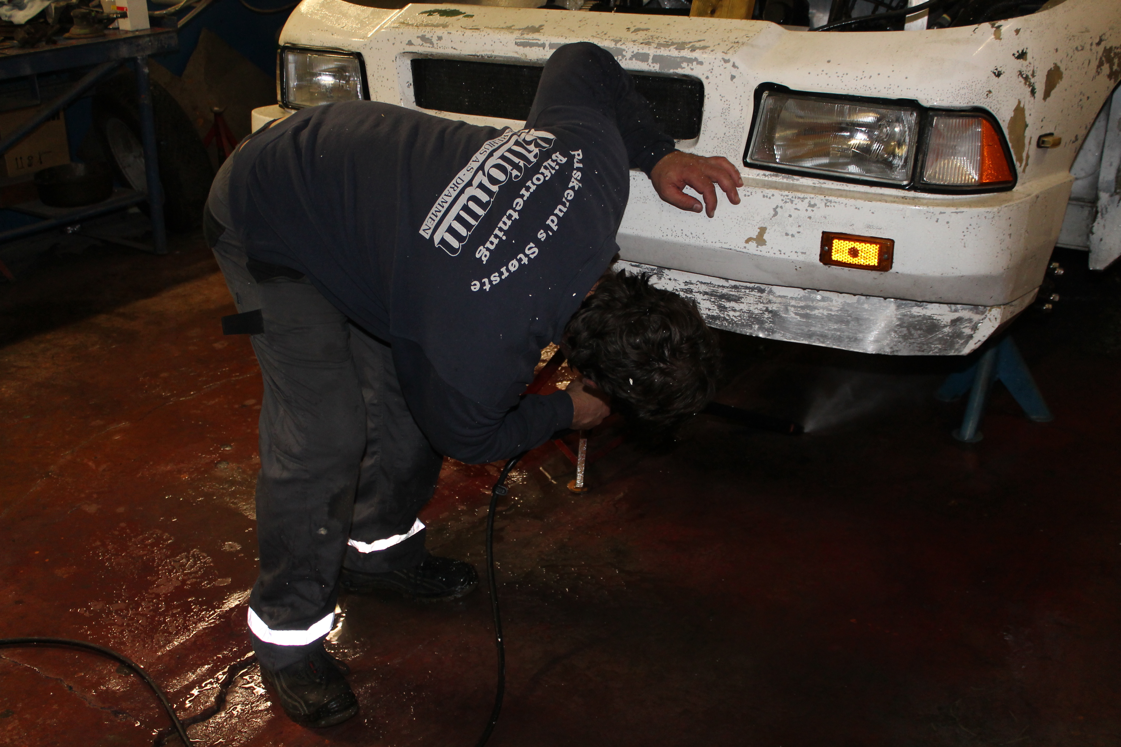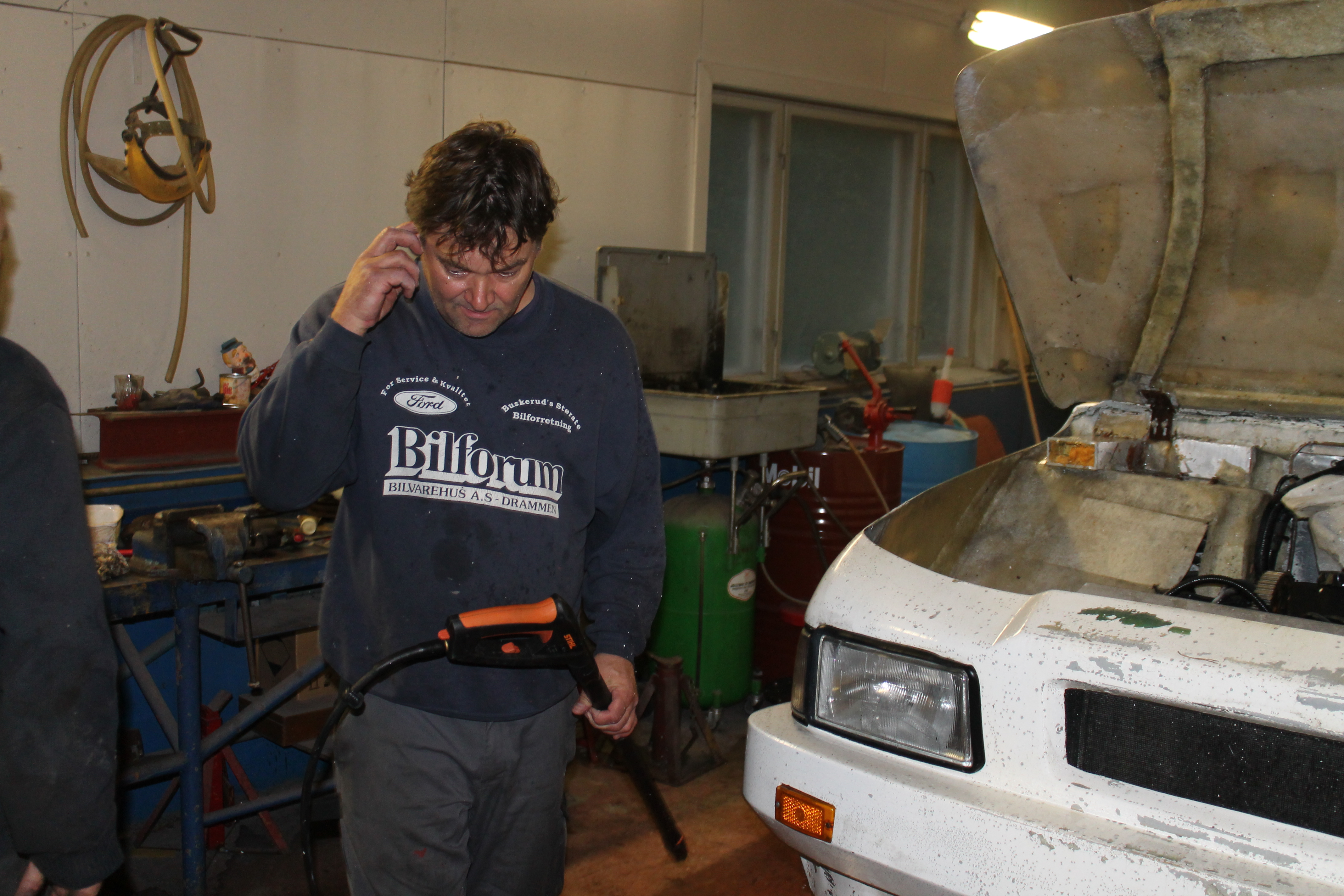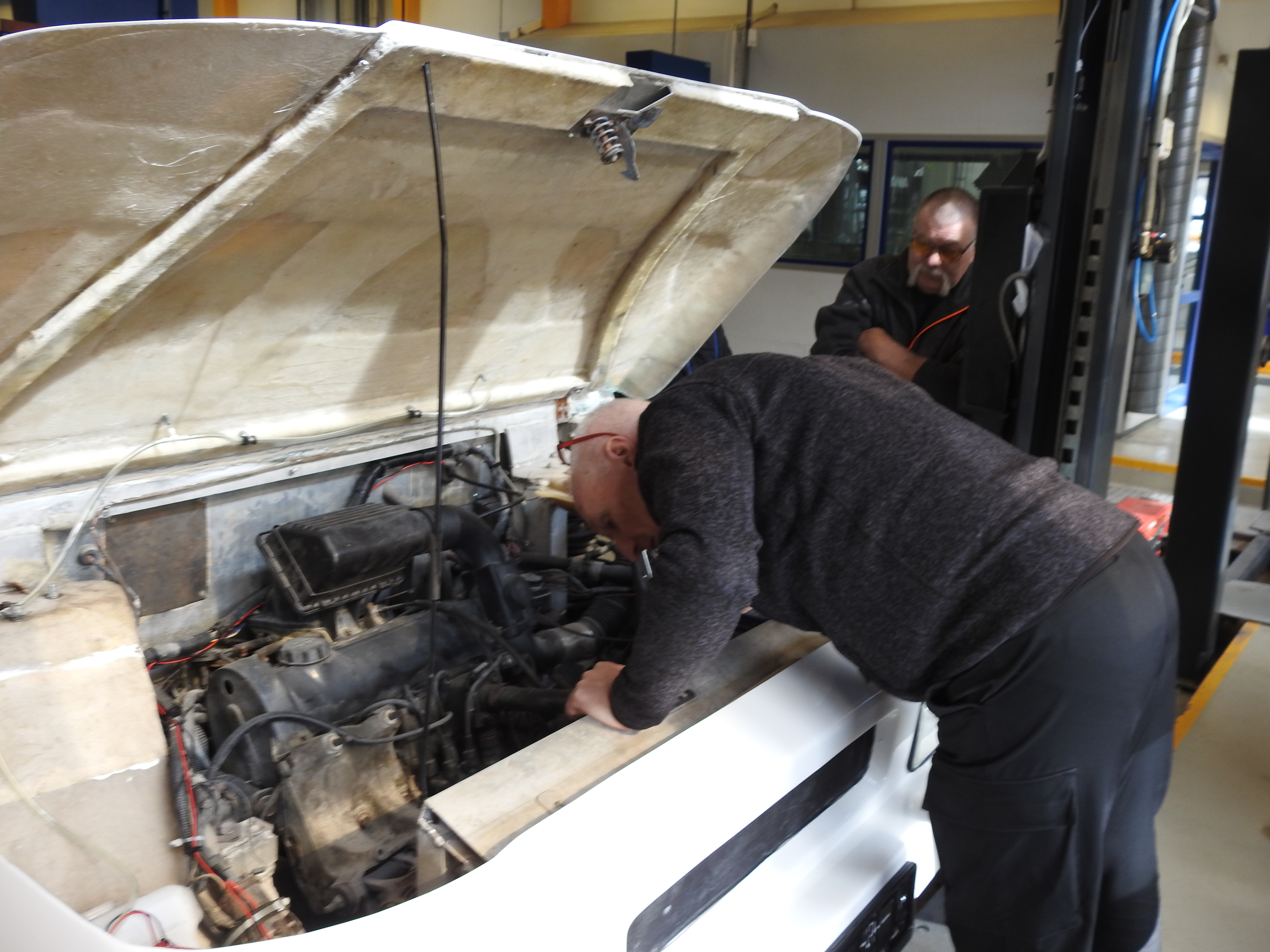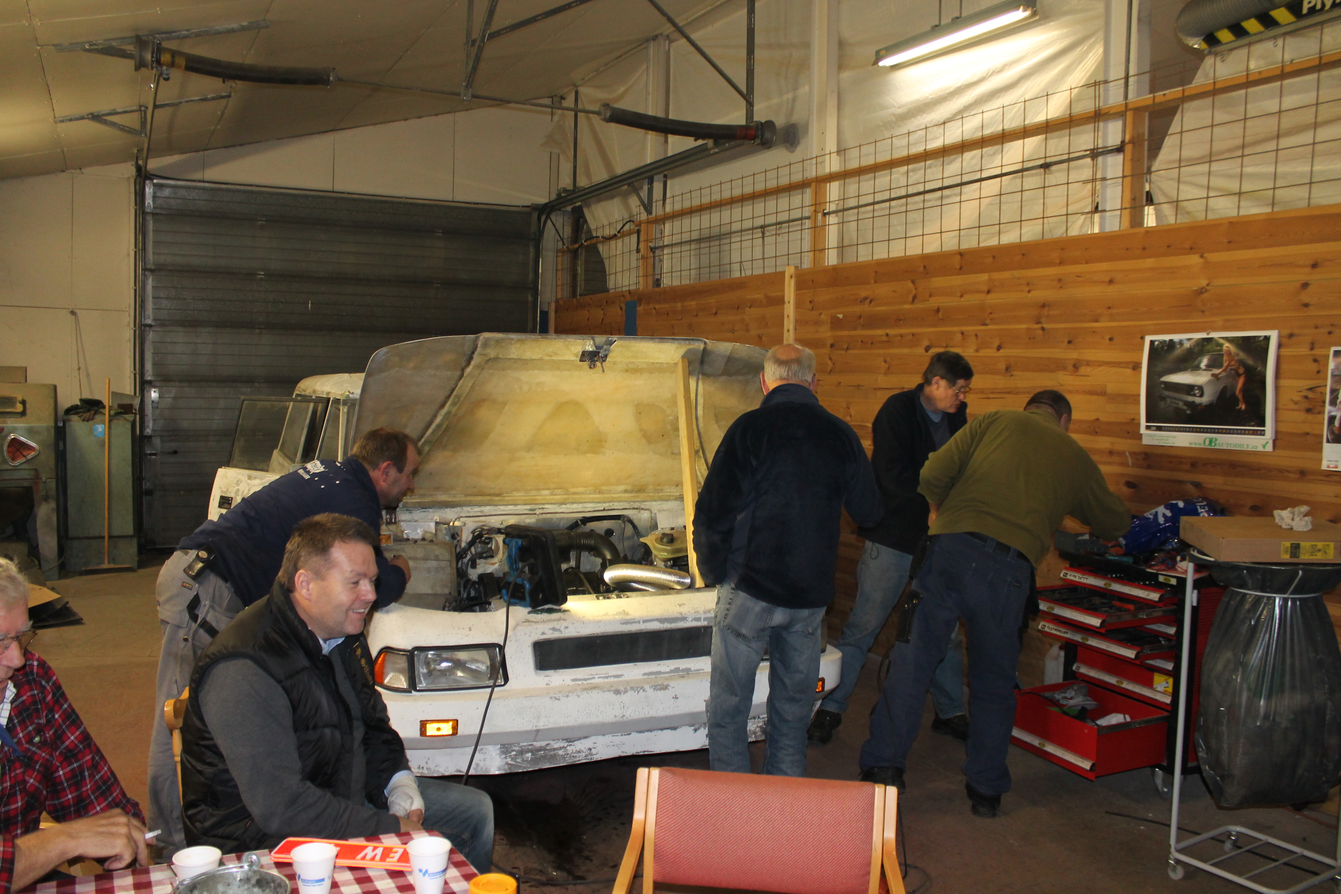Jobben startet med nettopp det å starte. I god redneck-stil ble tanken tømt og brun bensin helt ut i grusen. Ei fyrstikk ble slengt bortpå, det sa poff og flammene sto skyhøyt over hustakene. Noen ganger er det ekstra moro å være forvokst guttunge. Jammen var det fres i gammal nordsjøolje. Med ny suppe på tanken var den halvgamle Mitsubishi-motoren startvillig som bare det. Nye bremserør var nødvendig, det samme med bremseklosser og slanger. Ellers var bremsesystemet i utmerket stand. Da bortsett fra et dårlig håndbrekk. Å kalle det dårlig er ingen overdrivelse, det har nemlig aldri vært håndbrekk på bilen. Det måtte bygges. Med kliss nye originale vaiere, litt flatjern, gjengestag og et håndtak fra Cortina er det håndbrekk så godt som noe. Man ble fortalt at bilen måtte kjøres forsiktig over fartsdumper, ellers kunne fjærbeina hoppe ut. Med korte bolter og muttere så vidt entret var neppe den advarselen for høyt poengtert. Alt er utbedret til beste standard. Karosseriet er det som har krevd størst innsats. Lakk som flasset, sprukket sparkel og skader etter et langt liv uten stell. Sparkel var det mye av, og det ble besluttet å fjerne alt og bygge opp på nytt. Det meste av dette har en mann som fortjener stor applaus, støvføykearbeider Rolf Maurseth tatt seg av. Den generelle entusiasmen rundt bilen har vokst betydelig etter som tiden har gått. Noen har spandert tepper, noen har spandert skai til dørsider og tak. Cary Bilglass har spandert frontrute og nytt batteri, Eiker Motorshop leverte nye dekker, Drammen Bilskade og Bulkfix i Drammen er blant de som har bidratt med varer og tjenester. Mange har respondert på tigging og puttet alt fra kronestykker til tusenlapper i boksen i pølsebua på Burud. Når vi er inne på mat så viser raske regnestykker at det i løpet av restaureringen har blitt konsumert omtrent en kilometer småpølser, tre hundre løk, to kålhuer og borti en kubikkmeter kaffe. Og store mengder brus, kaker og sjokolade. Ved et par anledninger til og med øl og dram. Det er viktig å kose seg, det er jo nettopp poenget med en hobby.