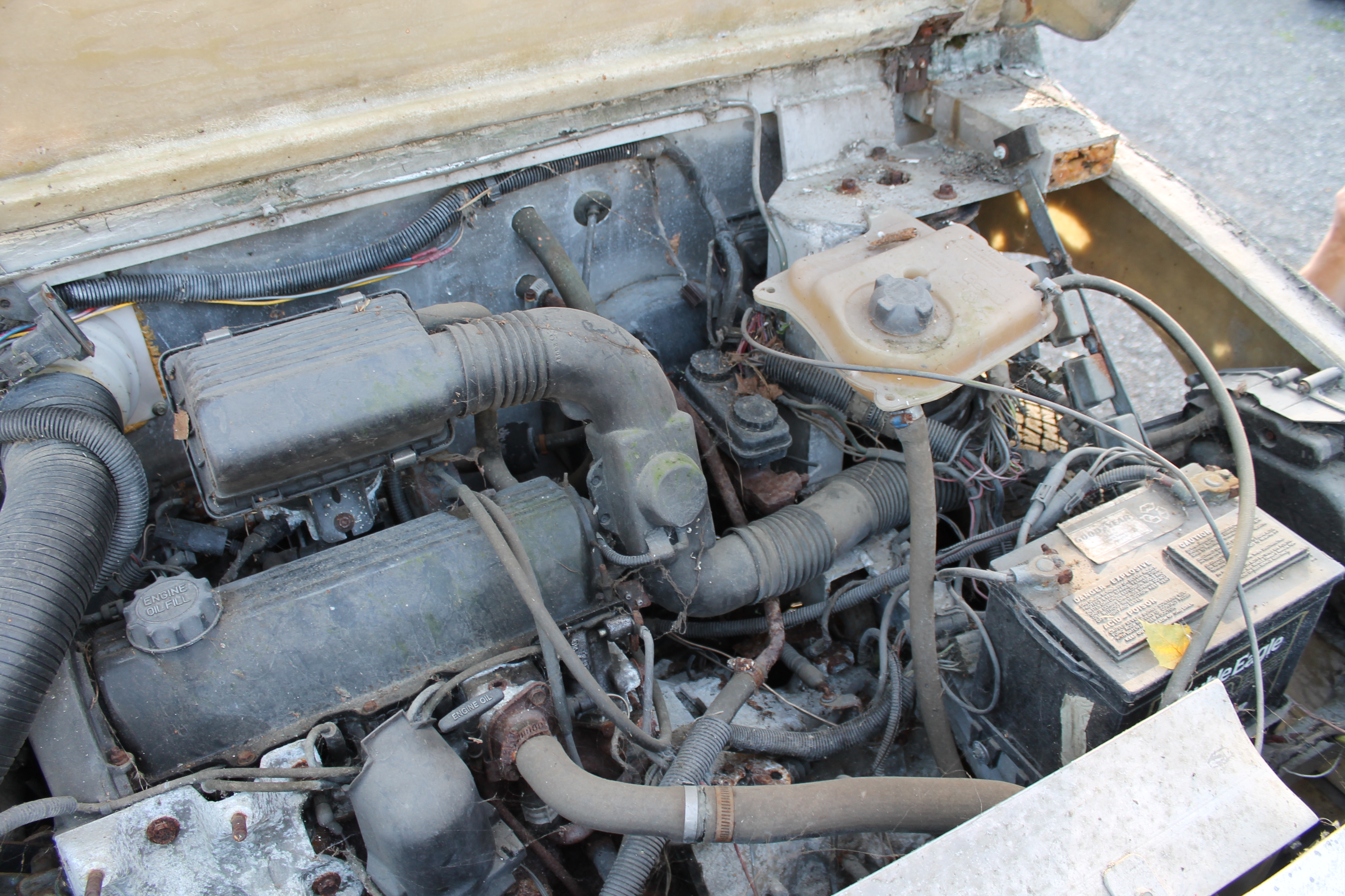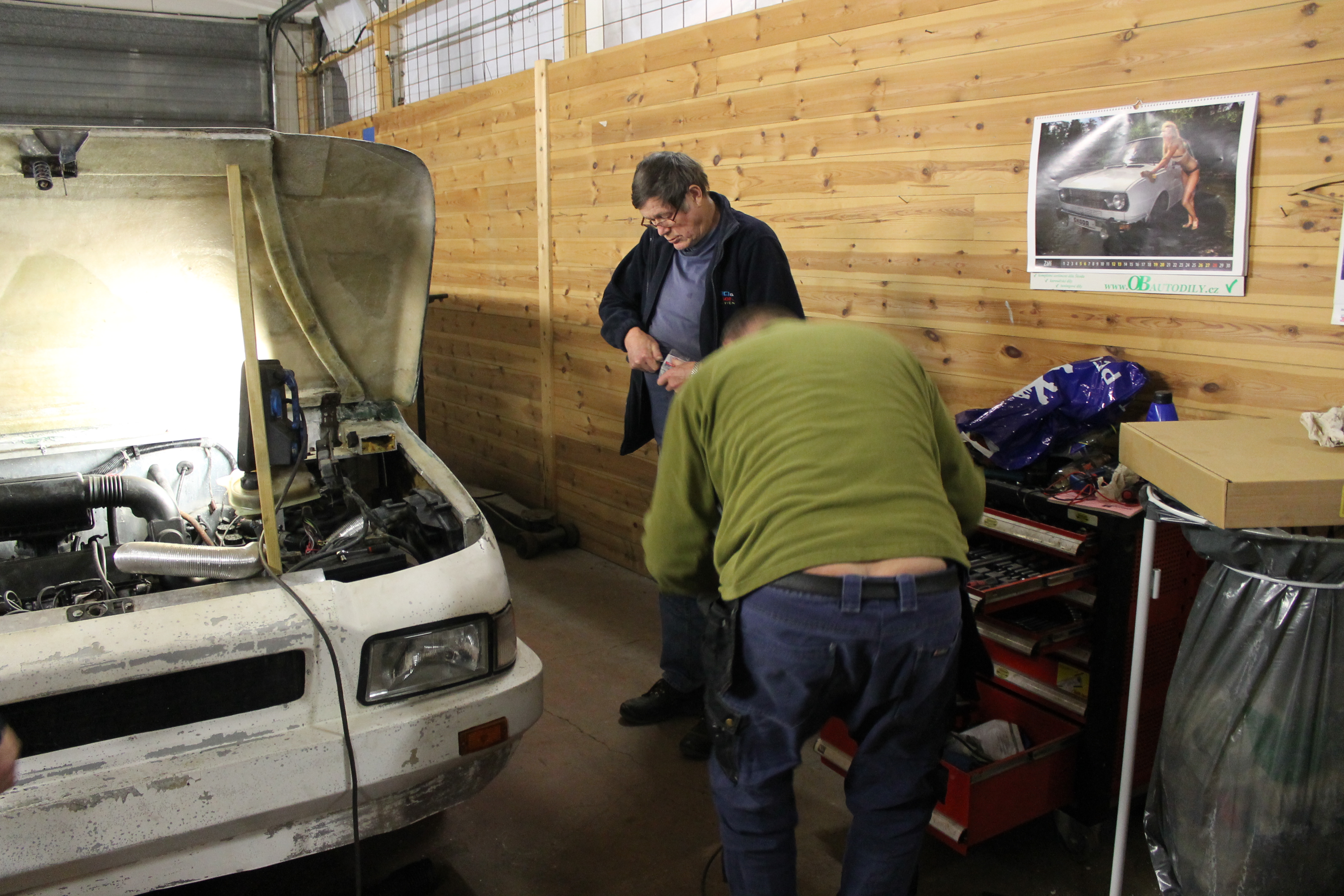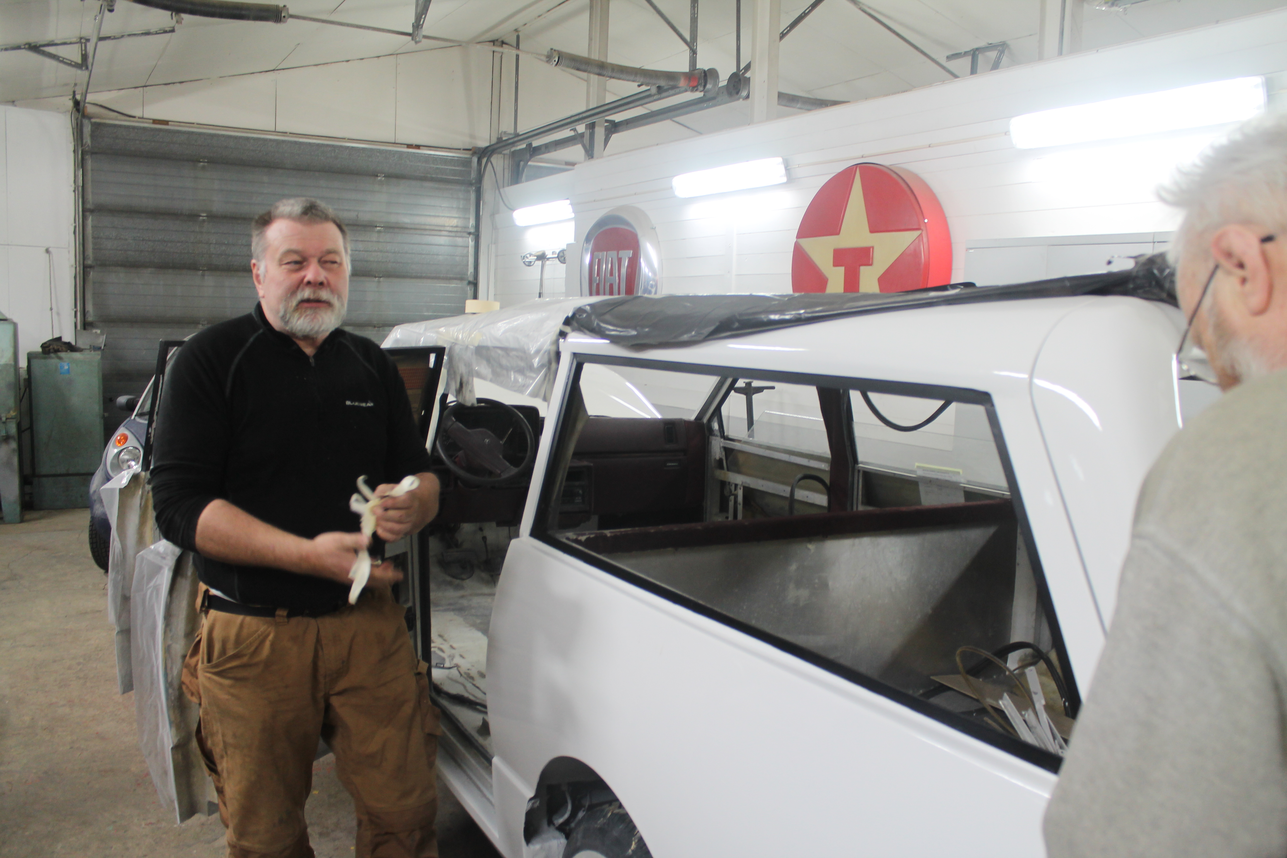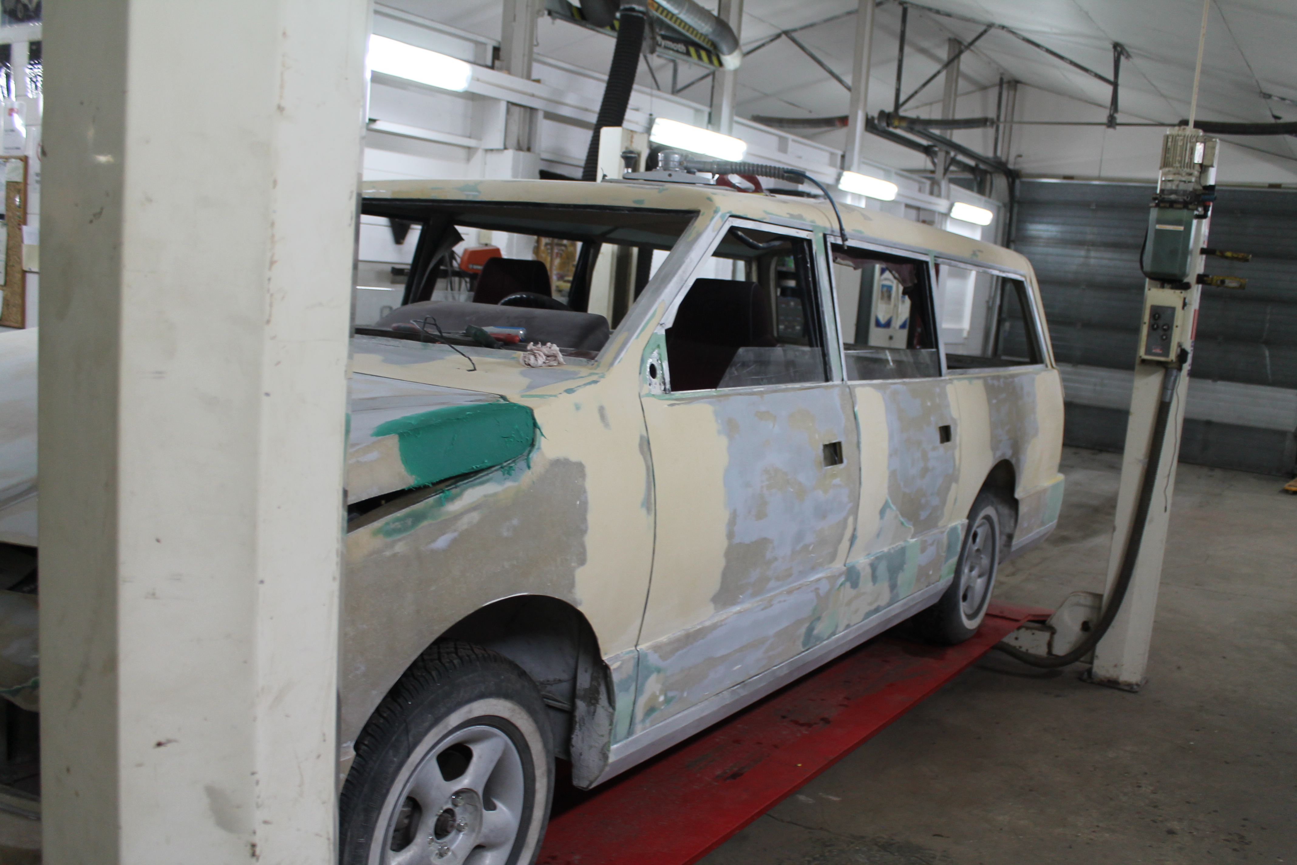 Jobben startet med nettopp det å starte. I god redneck-stil ble tanken tømt og brun bensin helt ut i grusen. Ei fyrstikk ble slengt bortpå, det sa poff og flammene sto skyhøyt over hustakene. Noen ganger er det ekstra moro å være forvokst guttunge. Jammen var det fres i gammal nordsjøolje. Med ny suppe på tanken var den halvgamle Mitsubishi-motoren startvillig som bare det. Nye bremserør var nødvendig, det samme med bremseklosser og slanger. Ellers var bremsesystemet i utmerket stand. Da bortsett fra et dårlig håndbrekk. Å kalle det dårlig er ingen overdrivelse, det har nemlig aldri vært håndbrekk på bilen. Det måtte bygges. Med kliss nye originale vaiere, litt flatjern, gjengestag og et håndtak fra Cortina er det håndbrekk så godt som noe. Man ble fortalt at bilen måtte kjøres forsiktig over fartsdumper, ellers kunne fjærbeina hoppe ut. Med korte bolter og muttere så vidt entret var neppe den advarselen for høyt poengtert. Alt er utbedret til beste standard. Karosseriet er det som har krevd størst innsats. Lakk som flasset, sprukket sparkel og skader etter et langt liv uten stell. Sparkel var det mye av, og det ble besluttet å fjerne alt og bygge opp på nytt. Det meste av dette har en mann som fortjener stor applaus, støvføykearbeider Rolf Maurseth tatt seg av. Den generelle entusiasmen rundt bilen har vokst betydelig etter som tiden har gått. Noen har spandert tepper, noen har spandert skai til dørsider og tak. Cary Bilglass har spandert frontrute og nytt batteri, Eiker Motorshop leverte nye dekker, Drammen Bilskade og Bulkfix i Drammen er blant de som har bidratt med varer og tjenester. Mange har respondert på tigging og puttet alt fra kronestykker til tusenlapper i boksen i pølsebua på Burud. Når vi er inne på mat så viser raske regnestykker at det i løpet av restaureringen har blitt konsumert omtrent en kilometer småpølser, tre hundre løk, to kålhuer og borti en kubikkmeter kaffe. Og store mengder brus, kaker og sjokolade. Ved et par anledninger til og med øl og dram. Det er viktig å kose seg, det er jo nettopp poenget med en hobby.