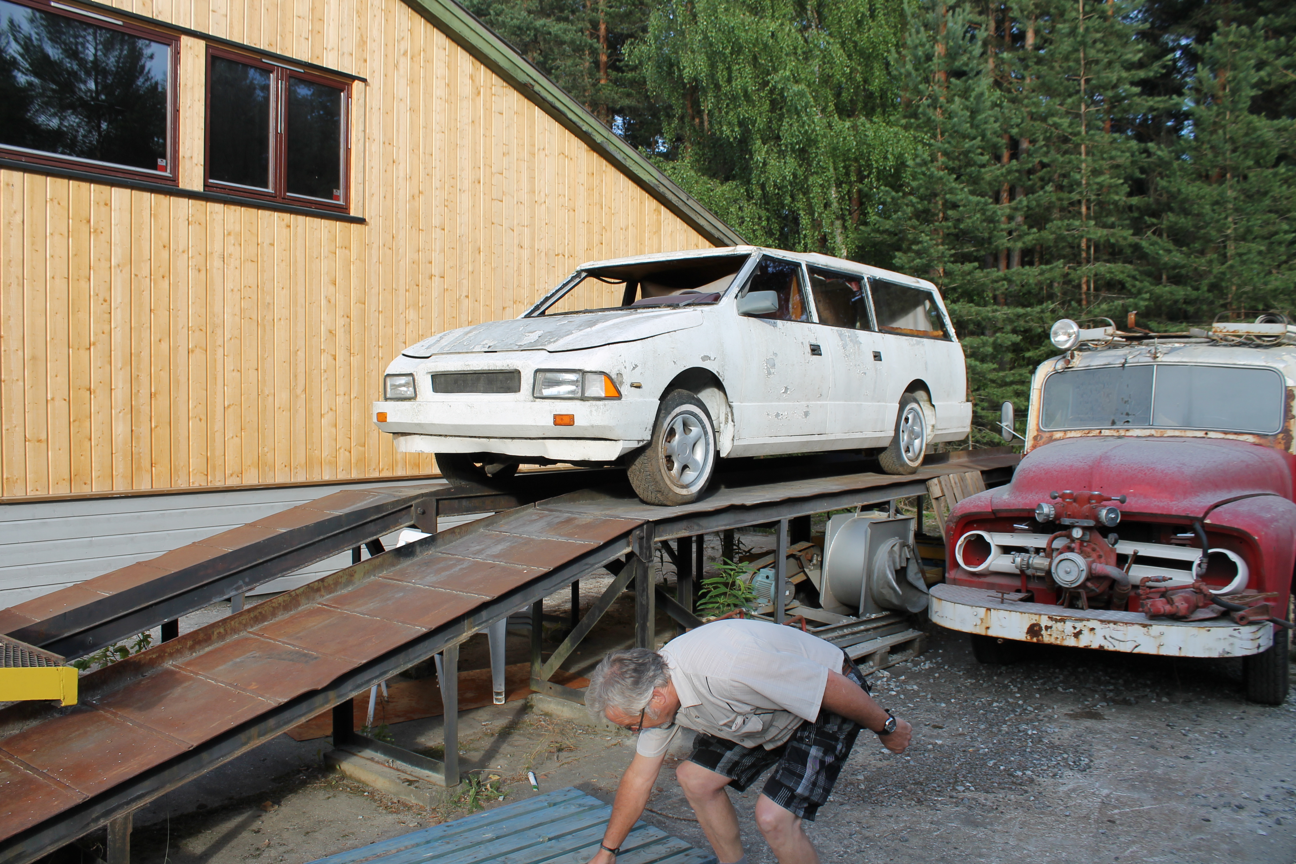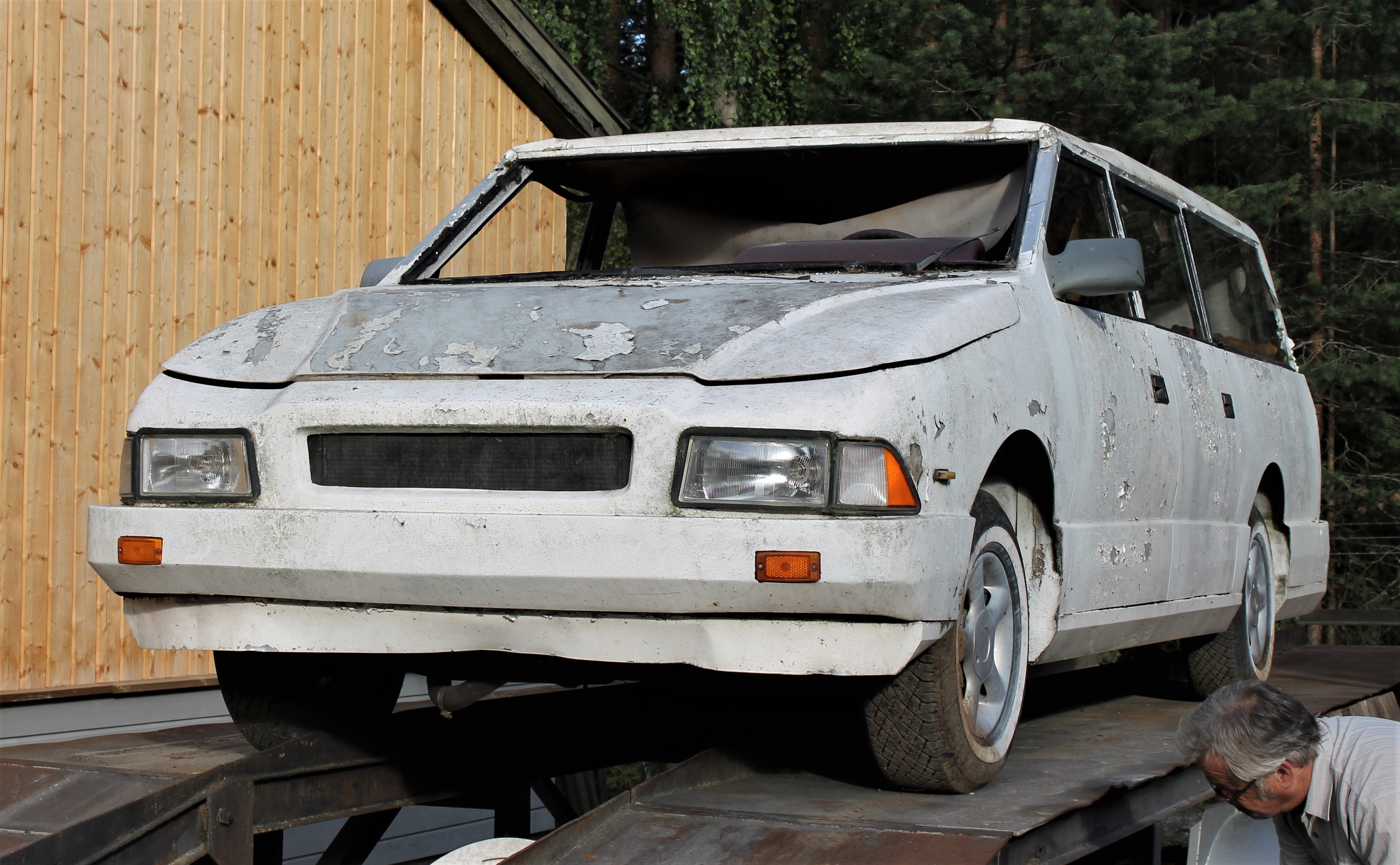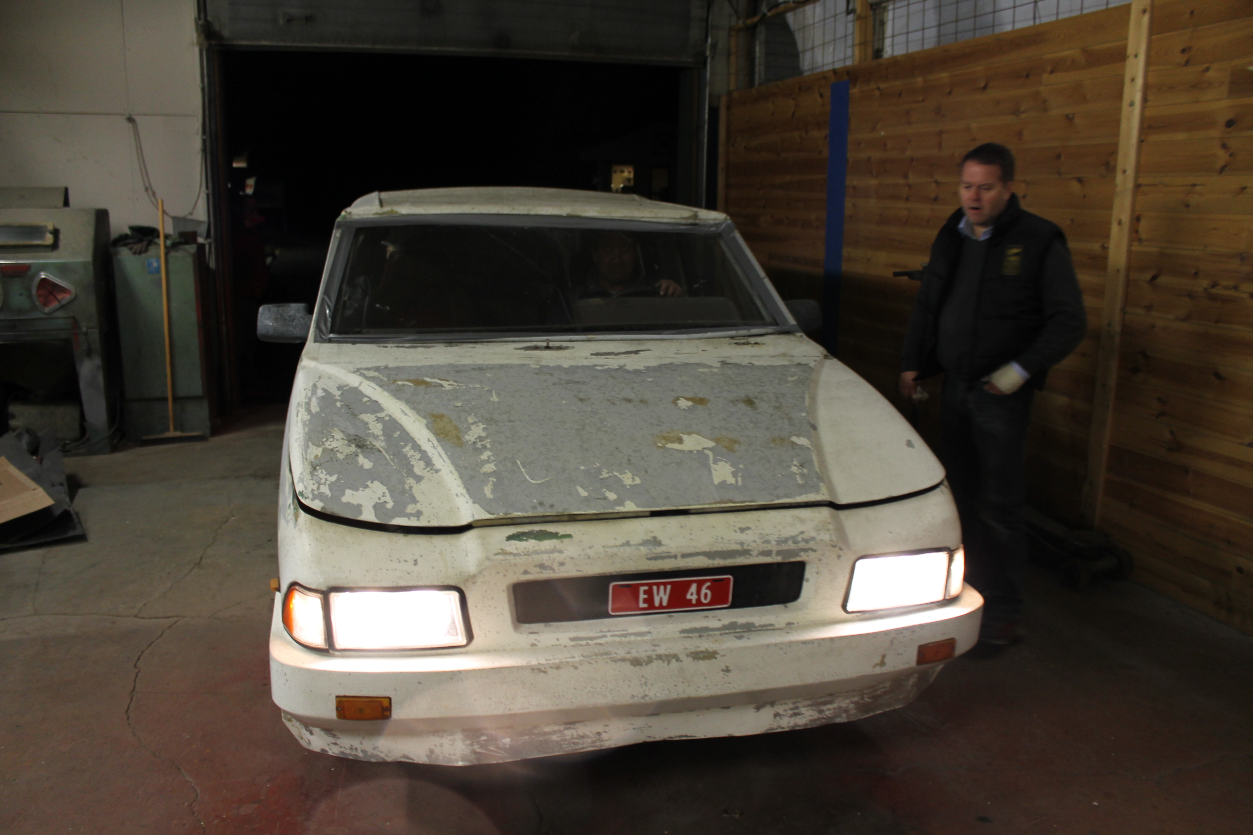En ikke ukjent fyr innenfor gammelbil-hobbyen, Lars Petter Skau var den som satte det hele i gang. Sammen med denne artikkelforfatter, Asle Wang og noen ytterst få andre modnet vi tanken om at dette kjøretøyet måtte vi forsøke å redde. Kontakt med eieren ble etablert og etter en stund ble det gitt aksept for at Motorhistorisk Klubb Drammen skulle få overta bilen som hadde stått delvis bortgjemt i en hage i drøye tjue år. En hemmelig operasjon ble satt i verk og på en vanlig Burud-onsdag forsvant klubbens Ford D-Serie ut porten med formål sivil ulydighet. Det var ganske mange som hadde til dels sterke og negative meninger om bevaring av denne bilen, så her måtte vi trå varsomt. Mannsterke og utstyrt med lange tau og kjettinger, med lokal bonde Pål Juel og hans traktor svingte vi en fin sommeraften i 2013 inn i en stille boliggate på Konnerud utenfor Drammen. Bak et hus langt oppi en hage, inni et kratt sto verdens eneste bil fullført av Norsk Bilproduksjon AS. Som alle andre biler som har stått noen år på jordbakke hadde også denne sunket langt ned. I den forbindelse er det fint at aluminium og glassfiber ikke ruster. Etter litt rykk og napp fikk vi lastet herligheten opp på lastebilen og satte kursen mot Skotselv og Norsk Motorhistorisk Senter. Vel framme stoppet Forden med den spesielle lasten midt på plassen. Det ble et oppstyr av en annen verden. Styret i klubben ble forbanna, noen tilskuere fikk blodtrykk på verdensrekordnivå, og det ble etter sigende syslet med impulsive mordplaner overfor oss som utførte ekspedisjonen. Vi mistet Facebook-vennskap og klubbmedlemskap ble avsluttet på grunn av denne historisk viktige bilen. Men så var det selvfølgelig også veldig mange som så det interessante og verdifulle i vogna. Etter noen måneder roet det hele seg ned og i lesende stund er det neppe mange som fortsatt synes vi skulle kjøre bilen på dynga.