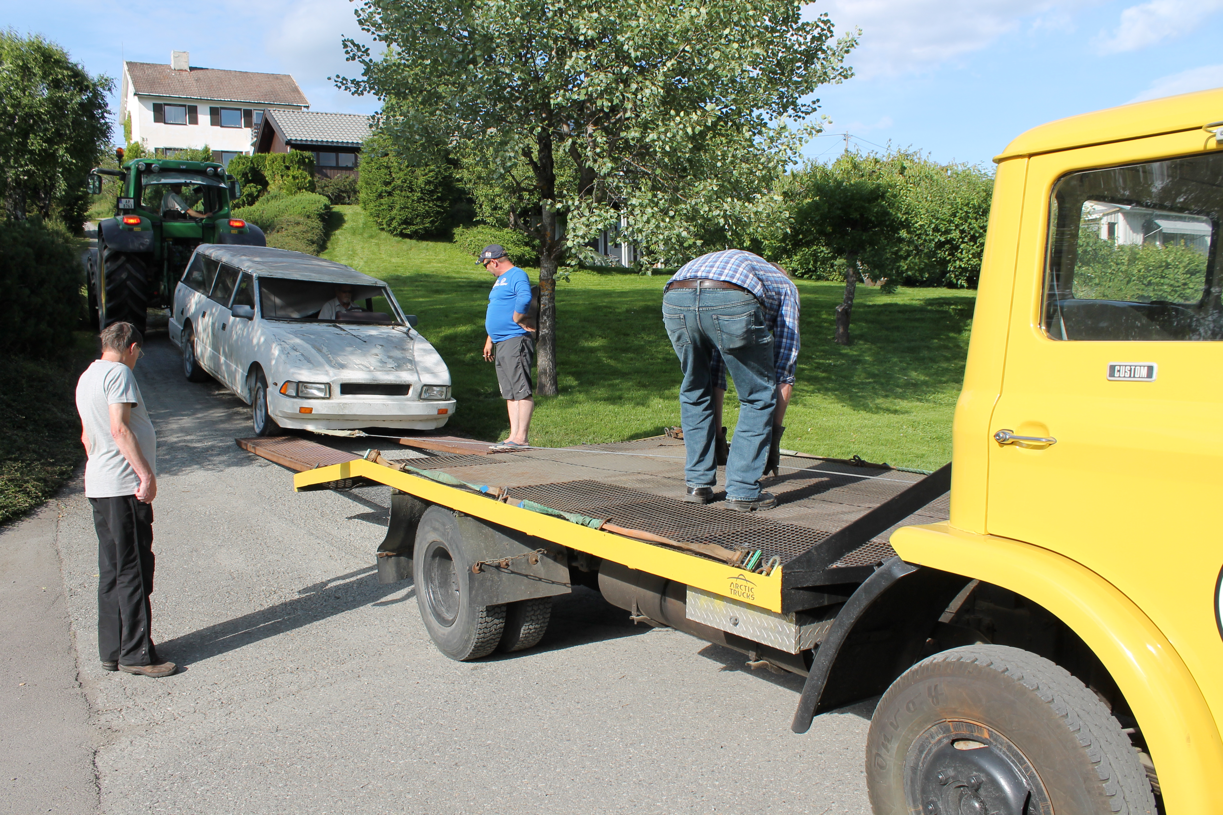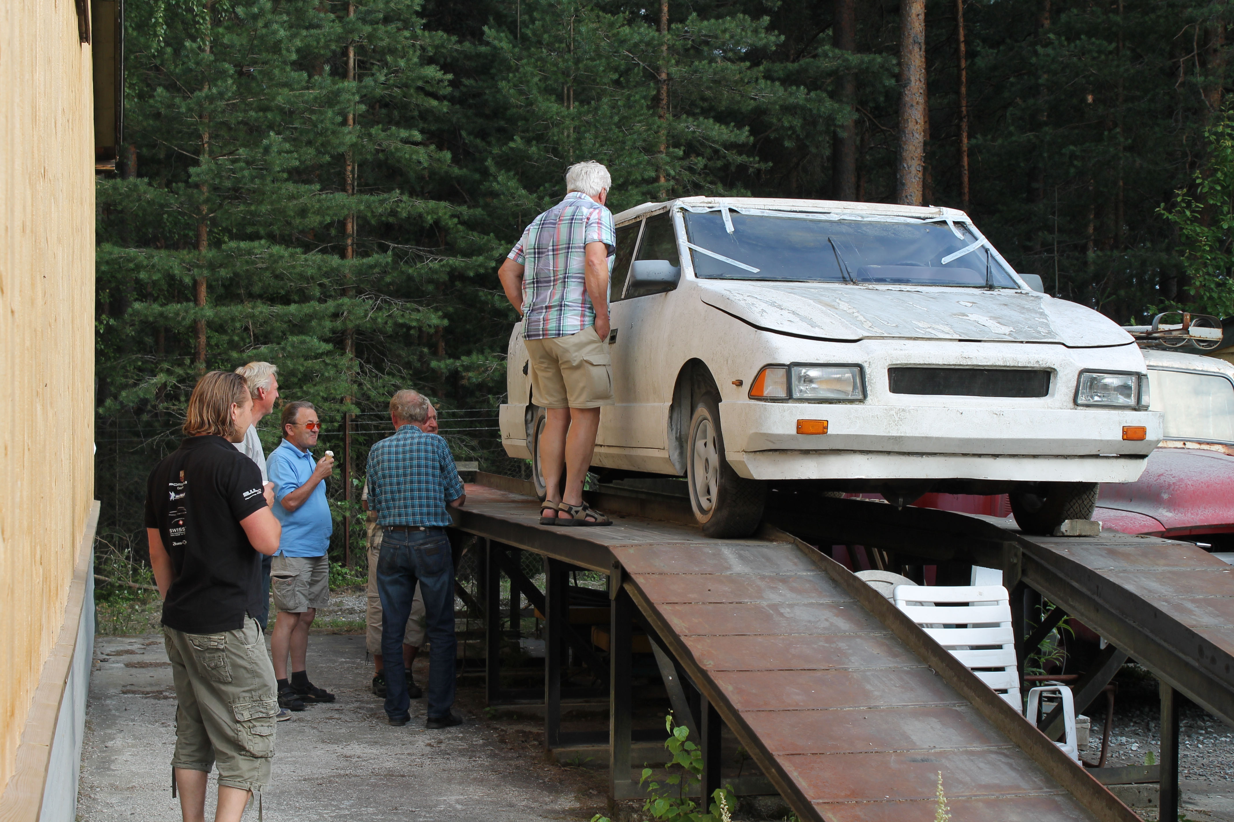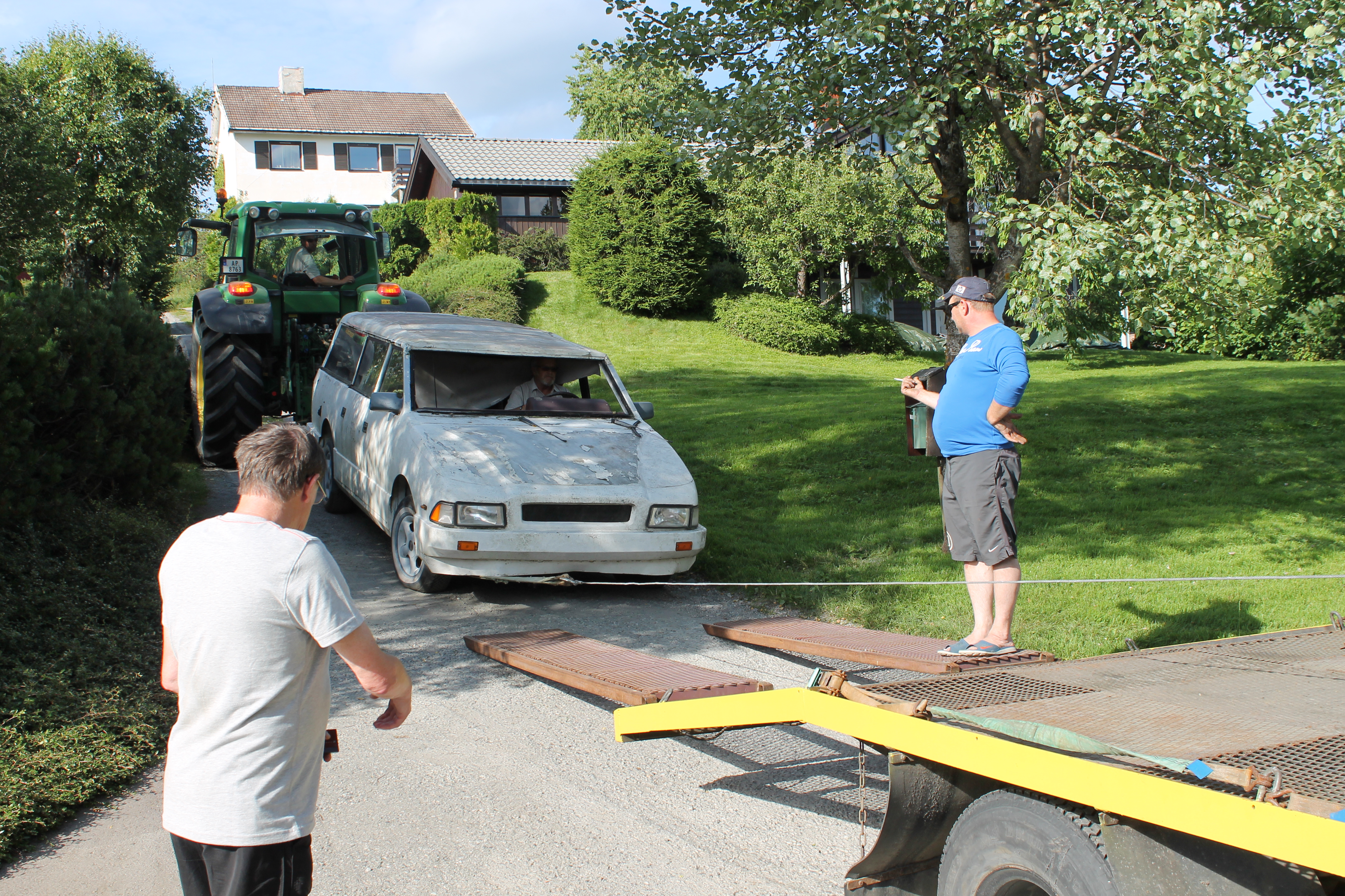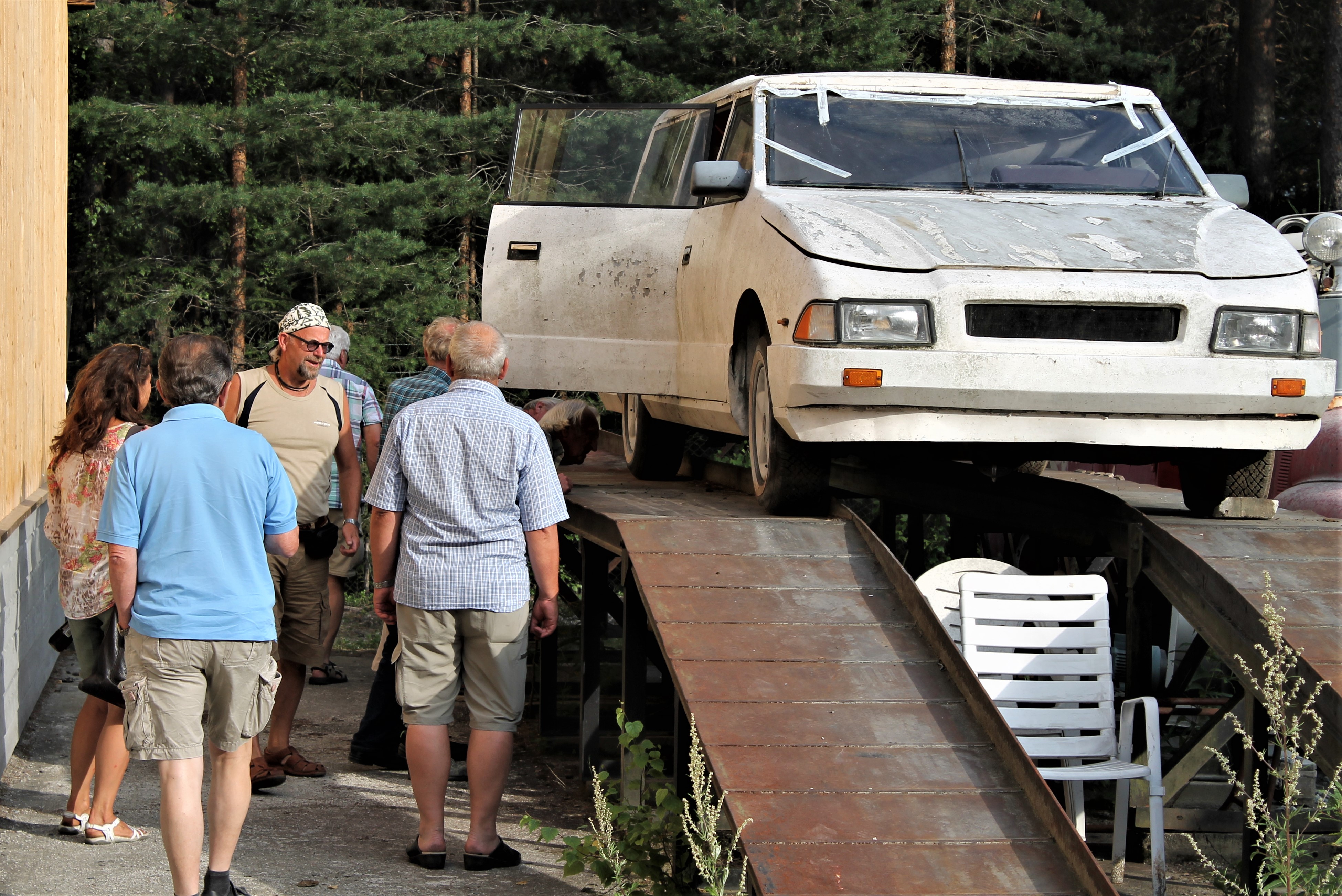 En ikke ukjent fyr innenfor gammelbil-hobbyen, Lars Petter Skau var den som satte det hele i gang. Sammen med denne artikkelforfatter, Asle Wang og noen ytterst få andre modnet vi tanken om at dette kjøretøyet måtte vi forsøke å redde. Kontakt med eieren ble etablert og etter en stund ble det gitt aksept for at Motorhistorisk Klubb Drammen skulle få overta bilen som hadde stått delvis bortgjemt i en hage i drøye tjue år. En hemmelig operasjon ble satt i verk og på en vanlig Burud-onsdag forsvant klubbens Ford D-Serie ut porten med formål sivil ulydighet. Det var ganske mange som hadde til dels sterke og negative meninger om bevaring av denne bilen, så her måtte vi trå varsomt. Mannsterke og utstyrt med lange tau og kjettinger, med lokal bonde Pål Juel og hans traktor svingte vi en fin sommeraften i 2013 inn i en stille boliggate på Konnerud utenfor Drammen. Bak et hus langt oppi en hage, inni et kratt sto verdens eneste bil fullført av Norsk Bilproduksjon AS. Som alle andre biler som har stått noen år på jordbakke hadde også denne sunket langt ned. I den forbindelse er det fint at aluminium og glassfiber ikke ruster. Etter litt rykk og napp fikk vi lastet herligheten opp på lastebilen og satte kursen mot Skotselv og Norsk Motorhistorisk Senter. Vel framme stoppet Forden med den spesielle lasten midt på plassen. Det ble et oppstyr av en annen verden. Styret i klubben ble forbanna, noen tilskuere fikk blodtrykk på verdensrekordnivå, og det ble etter sigende syslet med impulsive mordplaner overfor oss som utførte ekspedisjonen. Vi mistet Facebook-vennskap og klubbmedlemskap ble avsluttet på grunn av denne historisk viktige bilen. Men så var det selvfølgelig også veldig mange som så det interessante og verdifulle i vogna. Etter noen måneder roet det hele seg ned og i lesende stund er det neppe mange som fortsatt synes vi skulle kjøre bilen på dynga.