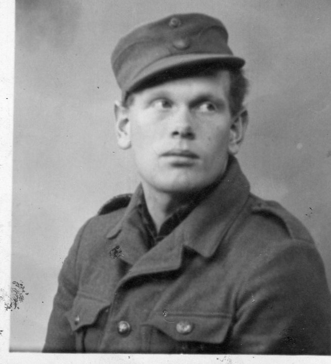 Under den tyske okkupasjon ble vanlig verneplikt avskaffet, men fra 1941 ble vernepliktige innkalt til obligatorisk arbeidstjeneste. Arbeidstjenesten (AT) var en ubevæpnet militær organisasjon ledet av Quislings Nasjonal Samling. Alle ble innkalt og truet til å tjenestegjøre, så også John. På bildet, antagelig fra 1943, ser vi ham i AT’s uniform. Ser ikke så veldig fornøyd ut. Tjenestegjøring i AT var altså helt vanlig, men langt fra populært og mange rømte etter hvert. Det er nærliggende å tro at det var den direkte årsaken til at John ble en av «gutta på skauen» Sannsynligheten er stor for at Johns onkel, Hjalmar Gundhus var den som hjalp til med rømningen og som introduserte ham for Milorg. Hjalmar Gundhus var lensmann i Nordre Modum, men i likhet med mange av sine kolleger var han avsatt av nazi-styret. Sannsynligvis lå John i dekning under falsk navn et sted på Nordre Modum. Vinteren 1944/45 kan han også ha vært innom cellene på Greenskogen i Sigdal, men var ikke blant de som hadde tilhold der over lengre tid. Der drev mannskaper med våpentrening og trening for å ta imot slipp fra engelske fly. Innunder en fjellskrent nedi et lite vakkert juv hadde inntil tretti mann tilhold. Det var ikke så veldig langt fra vei, men cellene ble holdt skjult bl.a.ved at lokalbefolkningen bedrev utstrakt vedhogst i området og på den måten gjorde det naturlig med spor og tråkk i terrenget. Johns onkel, lensmann Hjalmar Gundhus og dennes nevø og Johns fetter Magne Gundhus var også tilknyttet miljøet. Cellene er nå restaurerte og informasjonstavler satt opp. En tur dit anbefales på det sterkeste. Forestill deg da hvordan det var der i tjuefem kuldegrader, i dyp snø og med en konstant frykt for at tyskerne skulle komme. Var neppe noen stjerner på det «hotellet». Hvis vi utvider begrepet litt kan vi si at cellene var en tidlig utgave av prefabrikerte hus. De ble bygd som lemmer i garasjen til William Midtskogen på Åmot og fraktet opp med lastebil.
