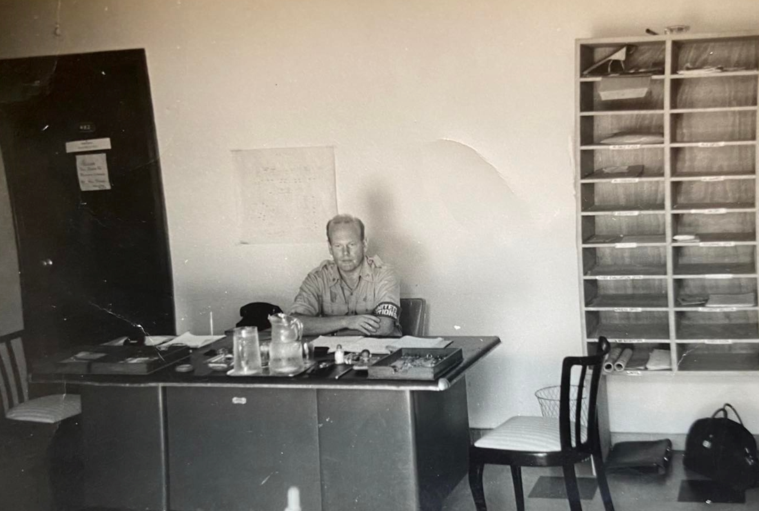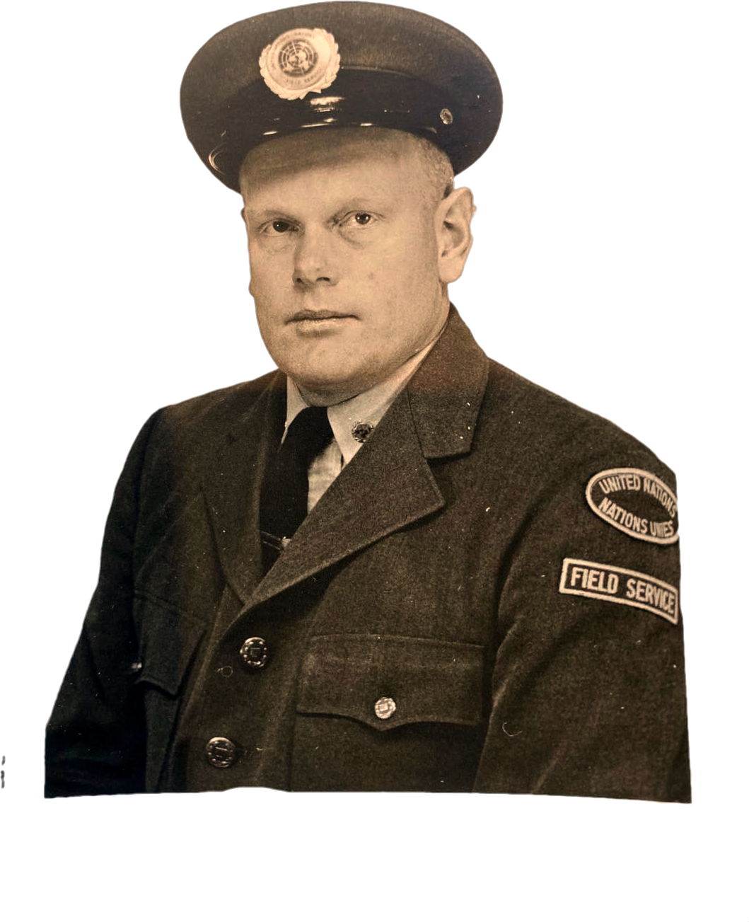 Kanskje ble det jevnt over søvnige livet på Nordre Modum etter hvert litt stille og lite utfordrende. Kanskje var det da han lærte å drikke imponerende mengder med kaffe? Lensmannsbetjenten som etter hvert hadde blitt lensmannsfullmektig ville ut i verden. Midt-Østen ble hans nye arbeidsplass i 1957. Som sikkerhetsoffiser i UNEF I under kommando av Lieutenant-General E.L.M. Burns fra Canada. Den gang som nå var det spetakkel i området. Styrker fra Brasil, Canada, Colombia, Danmark, Finland, India, Indonesia, Norge, Sverige og Jugoslavia skulle ordne opp i uroen. De holdt på fra november 1956 til juni 1967. Snart sytti år etter kan man vel si at det ikke har vært veldig vellykket. På det meste var det drøyt seks tusen mann der nede samtidig, 109 fra ulike nasjoner kom hjem i kiste. Til sammen tjenestegjorde 10989 nordmenn i UNEF I.