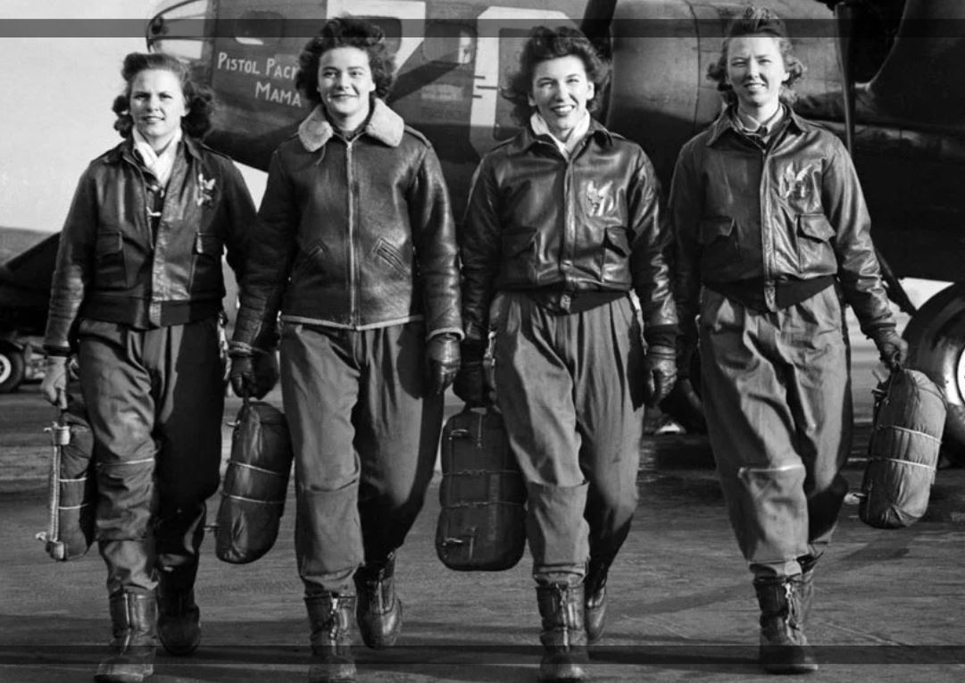 I 1942 opplevde USA en akutt mangel på piloter. Man skulle så gjerne frigjøre flyvere til strid andre steder i verden. Så måtte man tenke alternativt. Det var da WASP dukket opp. Women Airforce Service Pilots. Et eksperiment risikovillige jenter meldte seg frivillig som flygere. De måtte faktisk selv betale for opplæringen og fikk liten ære etter krigen. På tross av alle viktige oppgaver de utførte. Kan du i dag forestille deg ei jente på nitten år drar av gårde med et firemotors bombefly? Neppe! Men slik var det altså. De flyvende jentene var tilknyttet baser og fabrikker og var de første til å fly en ny maskin. Oppgaven deres var å fly maskinene i transit rundt til baser hvorfra skarpe oppdrag ble utført. De fungerte også som testflygere på maskiner som hadde vært inne til reparasjoner. Ikke nok med det, de trakk flygende mål slik at bakkemannskapene kunne trene på å skyte ned fly. Sikkert i overkant spennende å trekke et liksomfly og vite at på bakken var det noen som skulle skyte på det. Med skarpt selvsagt. Tenk om de siktet på feil fly………. Navigasjon lærte de ikke, de fikk kart og kompass. Det fikk holde, samme utstyr som en orienteringsløper altså. Noen lærte på egenhånd å navigere og begynte etter hvert også med nattflyging. Godt 1100 damer utførte i USA disse tjenestene fra 1942 og et par år framover. 36 av dem ofret livet. De fløy alle slags maskiner, speiderfly, jagere, transportfly, bombefly og alt mulig annet rart. Ved en liten seremoni i 1944 sa sjefen for U.S. Army Air Forces at han til å begynne med var sterkt i tvil om ei jente klarte å håndtere en tung B-17 i dårlig vær, men innrømte at disse tøffe damene var like gode flyvere som karene.